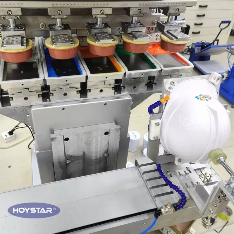 Som den profesjonelle Kina-produsenten og leverandøren, er HOYSTAR 6 Color Safety Hjelm Pad Printing Machine utstyrt med PLC-berøringsskjerm-kontrollpanel enkel å betjene. Denne maskinen konstruert for utskrift på buede og uregelmessige overflater som hjelmer. Denne allsidige maskinen er ideell for en rekke bransjer, inkludert sikkerhets- og verneutstyr, sportsutstyr, bildeler, reklameartikler, elektroniske hylser og leker. Og har justerbar bordhøyde for å imøtekomme ulike produktdimensjoner.