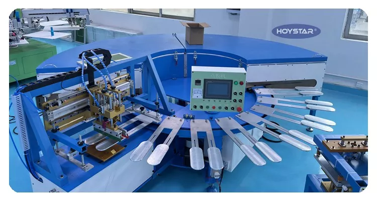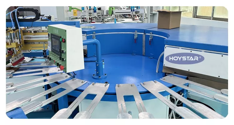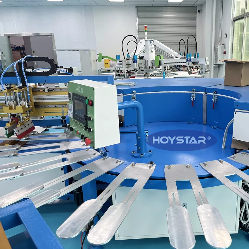 HOYSTAR er en pålitelig produsent og leverandør i Kina; Denne HOYSTAR High Rapid Anti-slip Socks Screen Printing Machine er designet for bruk i tekstilstrikkeindustrien. Med en hastighet på opptil 800-1000par/Hr er den egnet for utskrift av sklisikre sokker, babysokker, voksensokker, fotballsokker osv. Utstyrt med roterende arbeidsbord er det veldig praktisk å laste og losse sokker. PLC berøringsskjermkontroll, veldig enkel å betjene. Maskin utstyrt med tørkesystem kan tørke silisium og blekk godt.