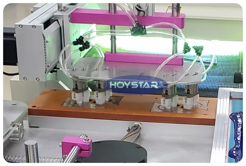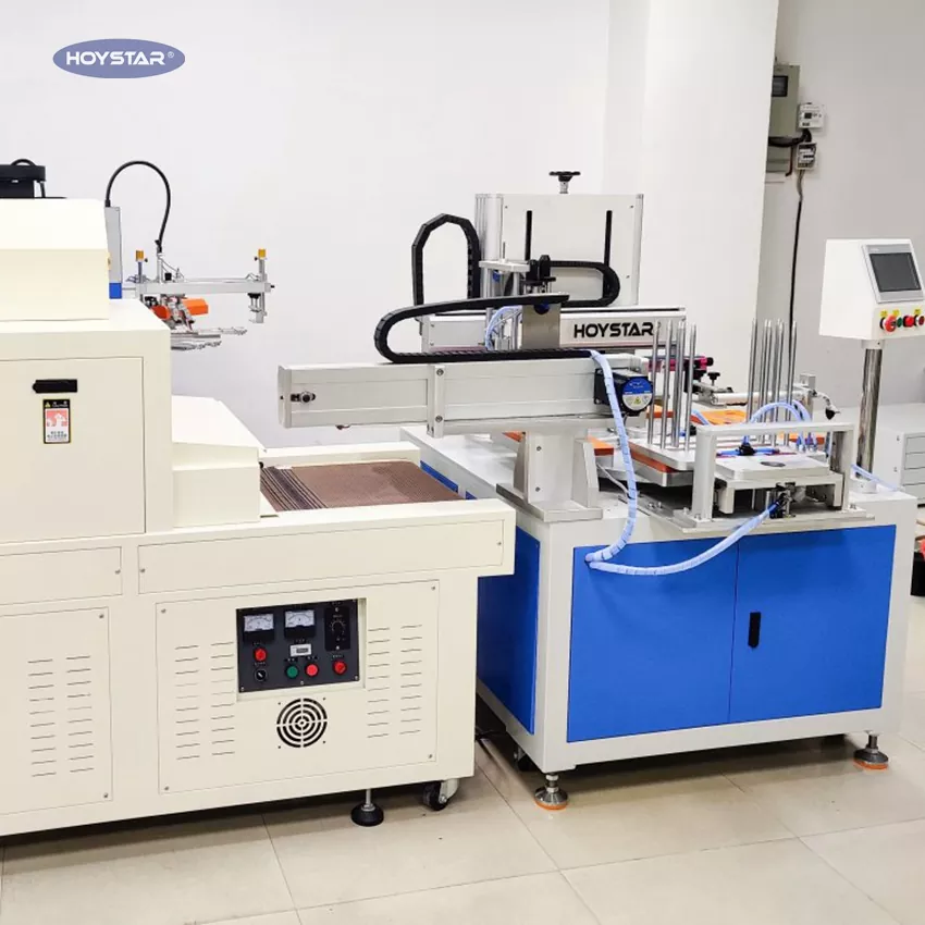 Som profesjonell produsent og leverandør leverer HOYSTAR automatisk silketrykkmaskin for linjaler Maskin utstyrt med høyhastighets roterende arbeidsbord, PLC-berøringsskjermkontroller, automatisk laste- og lossesystem, system, egnet for utskrift på forskjellige linjaler