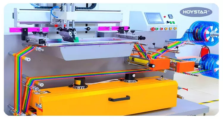 Som en profesjonell produsent i Kina, leverer HOYSTAR Film Roll To Roll Screen Printing Machine. Maskin utstyrt med fotoelektrisk registrering, PLC-berøringsskjermkontroller, tilpassbare innstillinger, sugejustering og inspeksjonslamper, kan maskinen forbedre utskriftseffektiviteten og utskriftskvaliteten. Egnet for utskrift på forskjellige filmer, bånd, etc.