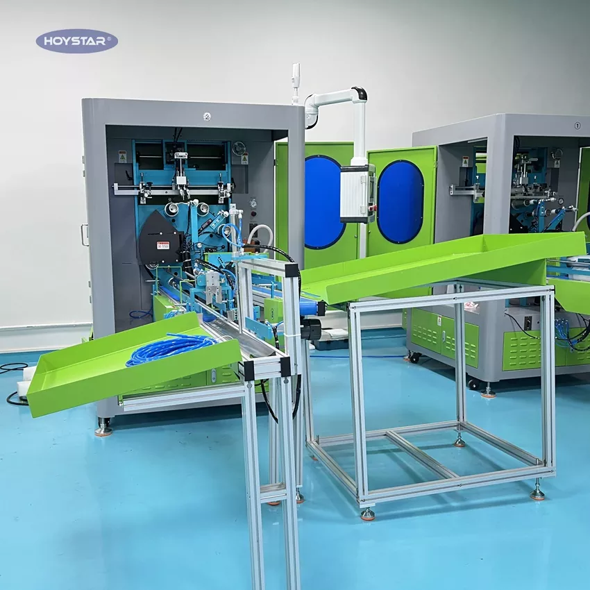 Som den profesjonelle produsenten i Kina ønsker vi å gi deg høyeffektiv HOYSTAR fullautomatisk flerfarge plastkopper silketrykkmaskin, høyeffektiv silketrykkløsning skreddersydd for spesifikke scenarier - vår spesialiserte helautomatiske silketrykkmaskin for kopper. Denne maskinen er designet for utskrift på kopper og leveres med fullstendig helautomatisk arbeidsflyt: automatisk lasting, automatisk utskrift, automatisk avlasting og LED UV-herding. Reduserer arbeidskostnadene betydelig og minimerer også feil under utskrift, noe som sikrer stabile utskriftsresultater i masseproduksjon.