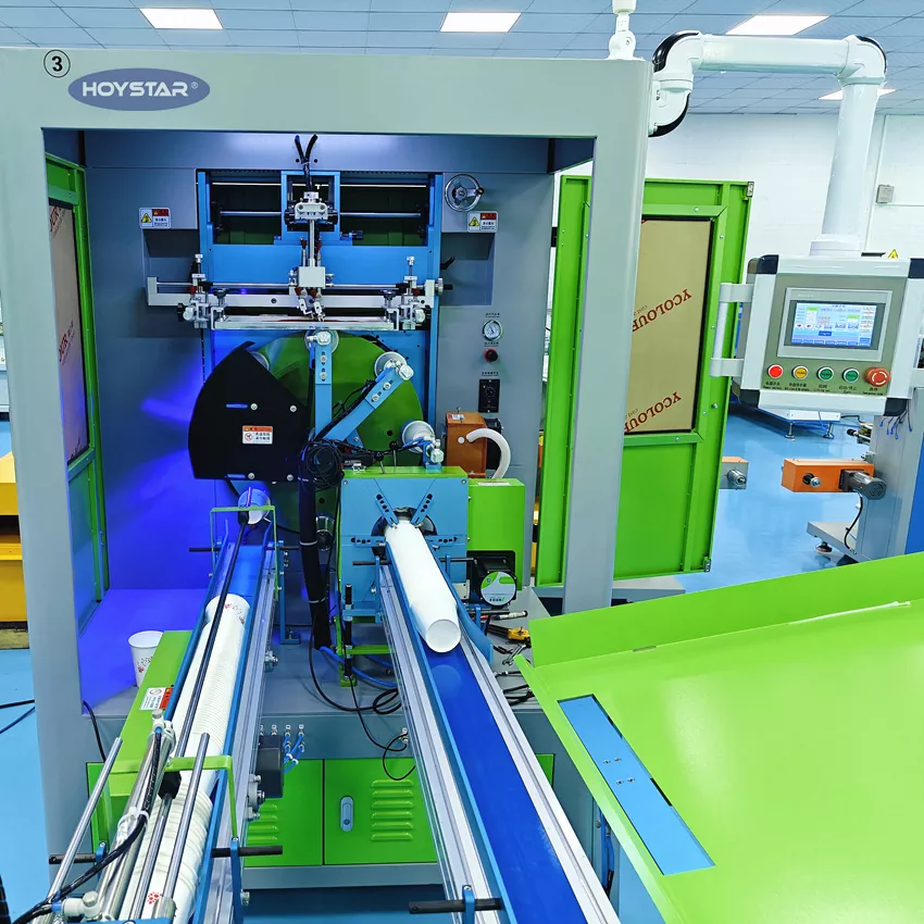 Denne HOYSTAR helautomatiske flerfarge-skjermtrykkmaskinen for plastkopper er profesjonelt designet for utskrift på ulike typer kopper, for å møte de spesifikke behovene til scenarier for kopputskrift. Den helautomatiske utskriftsmodusen – med automatisk lasting, automatisk utskrift, automatisk avlasting og LED UV-herding sparer arbeidskraft. Utstyrt med PLS berøringsskjermkontroll, sikker og brukervennlig betjening. Operatører kan enkelt fullføre parameterinnstilling, prosessovervåking og maskinjustering. Egnet for utskrift på kopper med forskjellige spesifikasjoner. Maskin med sin stabile utskrift og fleksible drift, kan møte masseproduksjonskravene til kundene.