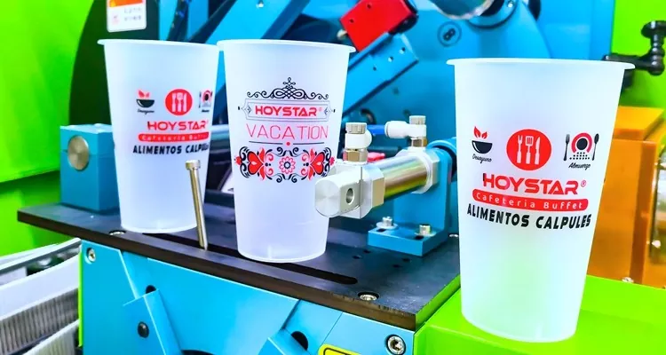 Denne HOYSTAR helautomatiske flerfarge plastkopper silketrykkmaskinen egnet for utskrift med et bredt spekter av kopptyper. Den er egnet for utskrift på plastkopper (som kalddrikkeplastkopper), melketekopper (inkludert både papir- og plastvarianter som vanligvis brukes i cateringbransjen), kaffekopper, papirkopper, tumbler og gjenbrukbare kopper (miljøvennlige gjenbrukbare plastkopper).