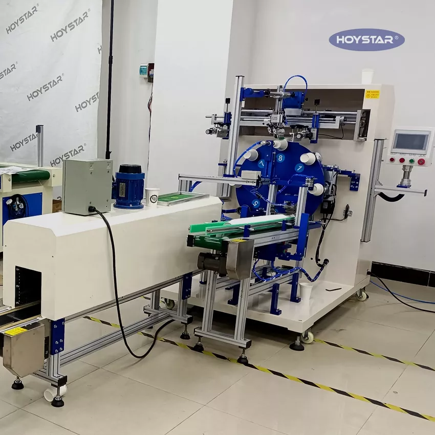 Som den profesjonelle produsenten og leverandøren er HOYSTAR helautomatisk 1-farge sylindrisk skjermtrykkmaskin for PP/PET-kopp profesjonelt designet for utskrift på ulike typer kopper, for å møte de spesifikke behovene til scenarier for kopputskrift. Den helautomatiske utskriftsmodusen – med automatisk lasting, automatisk utskrift, automatisk avlasting og IR-tørkesystem sparer arbeidskraft. Utstyrt med PLS berøringsskjermkontroll, sikker og brukervennlig betjening. Operatører kan enkelt fullføre parameterinnstilling, prosessovervåking og maskinjustering. Egnet for utskrift på kopper med forskjellige spesifikasjoner. Maskin med sin stabile utskrift og fleksible drift, kan møte masseproduksjonskravene til kundene.