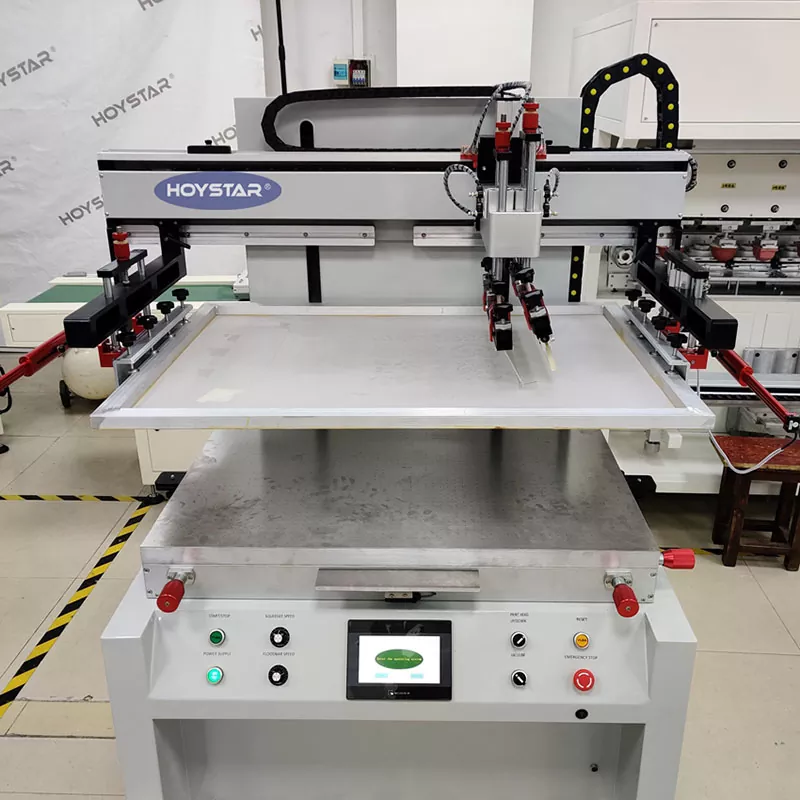 Som den profesjonelle produsenten og leverandøren er HOYSTAR Semi Automatic Flatbed Screen Printing Machine designet for utskrift på forskjellige flate gjenstander, Utstyrt med et vakuumsugearbeidsbord forhindrer effektivt forskyvning av flatt utskriftsmateriale Enten du skriver ut med papir eller plastfilm, garanterer denne funksjonen at hvert utskriftsprodukt oppfyller kundens høykvalitetskrav.